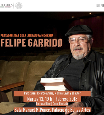 El Instituto Nacional de Bellas Artes rendirá un homenaje a Felipe Garrido, director adjunto de la Academia Mexicana de la Lengua, el martes 13 de febrero a las 19:00 horas en la Sala Manuel M. Ponce del Palacio de Bellas Artes, en el marco del ciclo Protagonistas de la Literatura Mexicana.