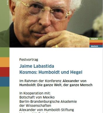 El filósofo y poeta Jaime Labastida participará en el Congreso internacional "Alexander von Humboldt: todo el mundo, todo el ser humano" que tendrá lugar entre el 5 y el 7 de junio en Berlín. La organización del Congreso es realizada por varias instituciones científicas: Berlín-Brandenburgische Akademie der Wissenschaften, Alexander von Humboldt Stiftung, Universität Potsdam y el Ibero-Amerikanisches Institut con motivo del 250 aniversario del natalicio de Alexander v. Humboldt.